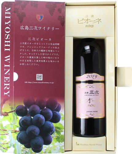三次を代表する特産品である「ピオーネ」を原料にした、全国的にも珍しいワイン。ピオーネをじっくり低温発酵させることでフルーティーに仕上がっており、ピオーネ果実を食べた時の果実味豊かな味わいや甘みをそのままワインに表現しています。